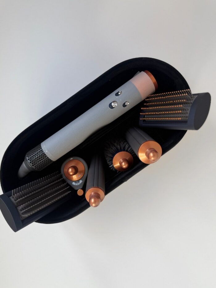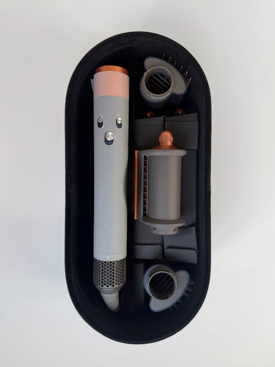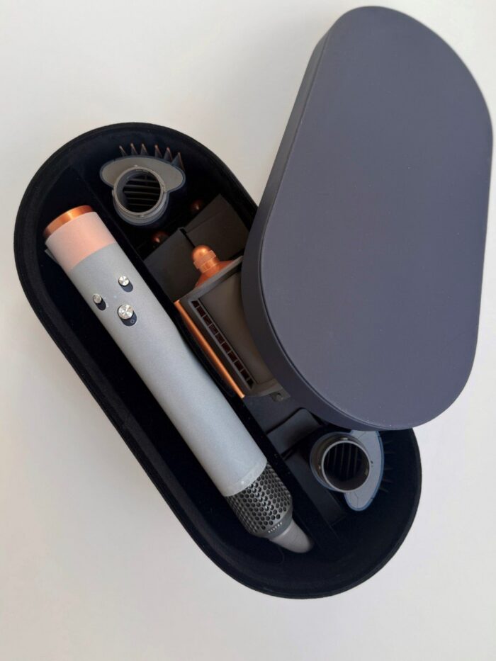 مدل موی چند حالت دهنده مدل Complete Long HS05 ( طرح دایسون ) برای موهایی تا طول سینه یا بلندتر. محتویات جعبه: مدل موی چند حالت دهنده Airwrap، برس تمیزکننده فیلتر، سشوار صاف کننده Coanda، مدل موی چند حالت دهنده دسته بلند 30 میلیمتری، مدل موی صاف کننده محکم، مدل موی صاف کننده دسته بلند 40 میلیمتری، مدل موی حجم دهنده گرد، مدل موی صاف کننده نرم، کیف ارائه از جنس طلای رزگلد اونیکس