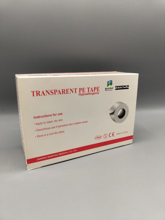 چسب ضد حساسیت شفاف PE (پلی اتیلن) نوعی چسب پزشکی است که برای تختهای بیمارستانی و پانسمان استفاده میشود. این چسب شفاف و براق است و به راحتی روی پوست قرار میگیرد. برخی از مزایای چسب شفاف هیپوآلرژنیک عبارتند از انعطافپذیری، مقاومت در برابر آب، تنفسپذیری پوست و قابلیت مشاهده پوست از طریق چسب. این چسب با استفاده از فناوری نانو، سطحی صاف و بدون خط و خش دارد که احتمال تحریک و التهاب پوست را کاهش میدهد.